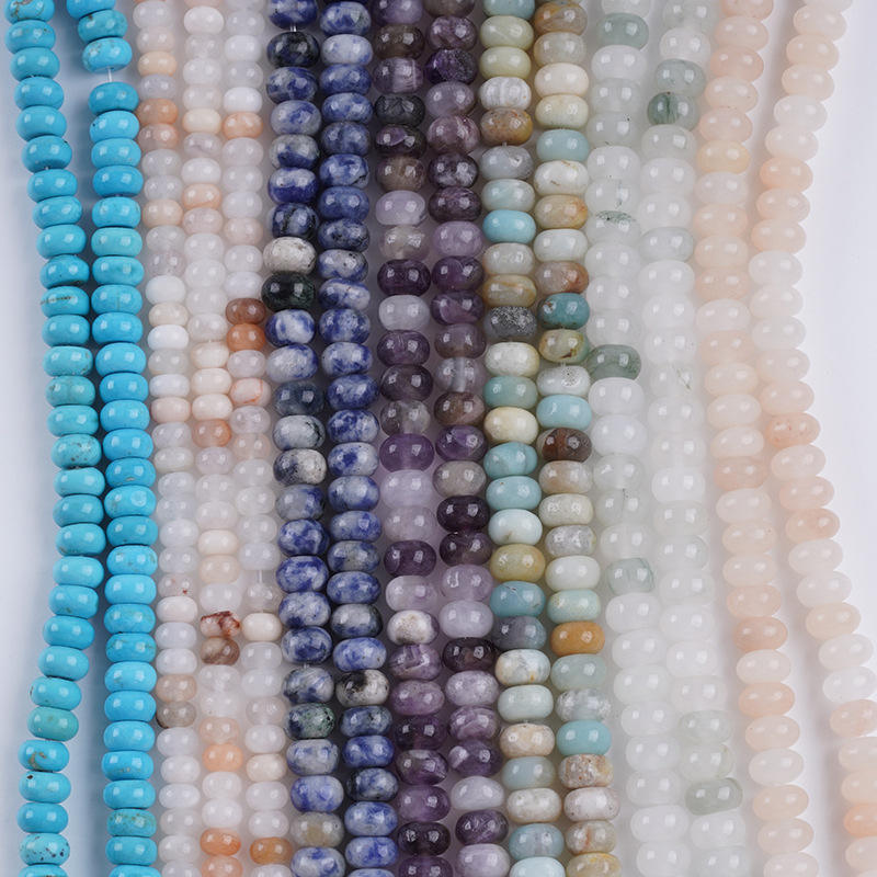 ลูกปัดคริสตัลเทอร์ควอยซ์ธรรมชาติหลายเม็ด รูปทรงแบนกลม แยกเป็นเส้นสำหรับทำสร้อยคอ DIY คริสตัลธรรมชาติ