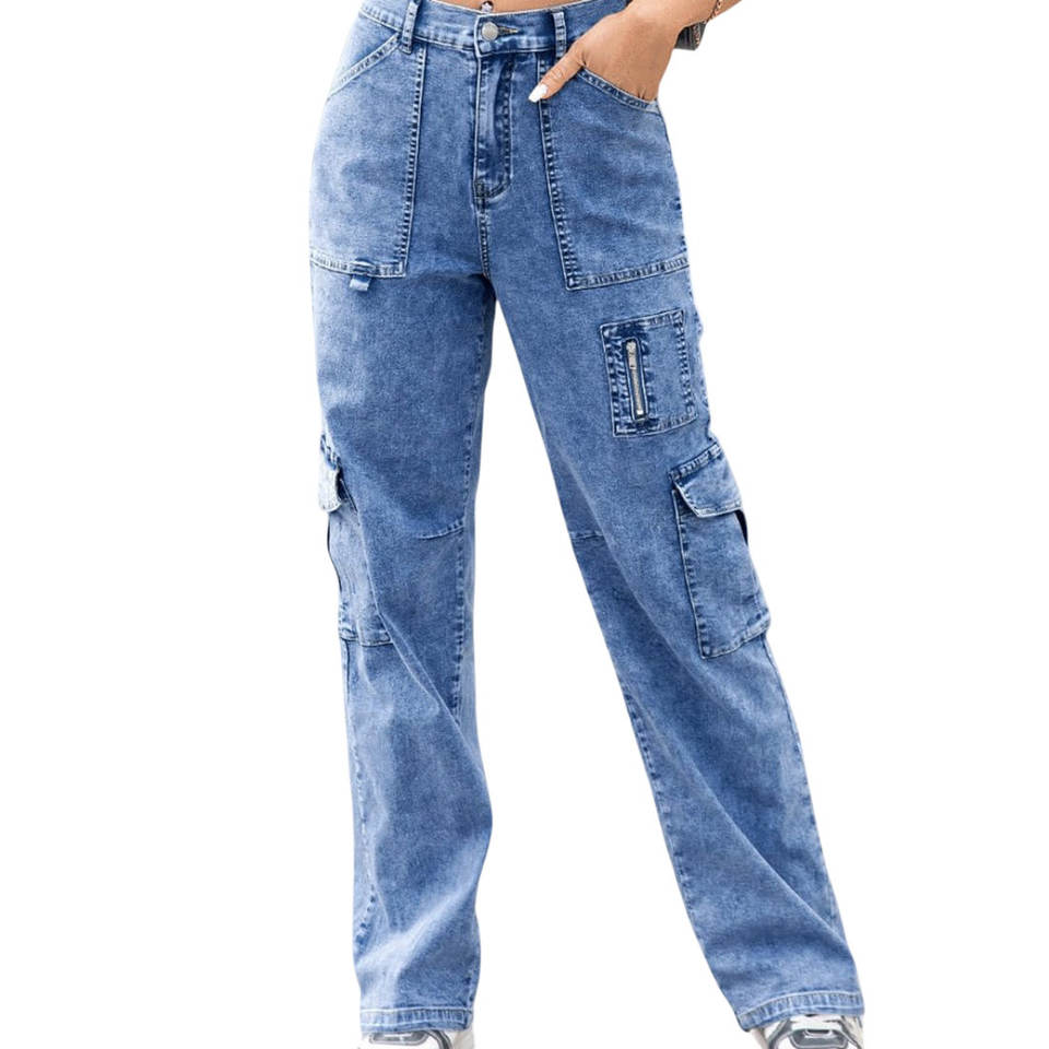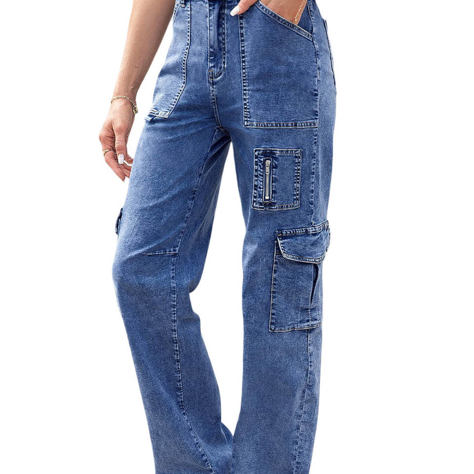 กางเกงคาร์โก้เอวสูงสำหรับผู้หญิงกางเกงคาร์โก้เอวสูงผ้าคอตตอนสำหรับผู้หญิงมีหลายกระเป๋า100% เครื่องแต่งกายแนวสตรีททันสมัย
