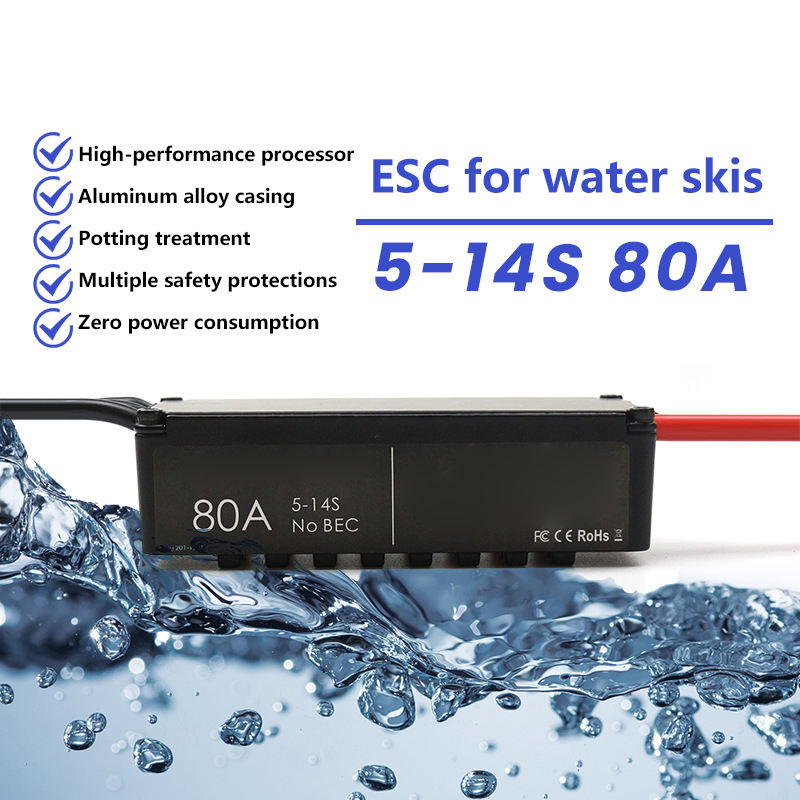 มอเตอร์กันน้ำแบบไร้แปรงถ่านพร้อมระบบป้องกันความปลอดภัยหลายชั้น 80A (5-14S) ESC สำหรับเรือสกีน้ำ อะไหล่เรือบังคับวิทยุ รุ่น RC037