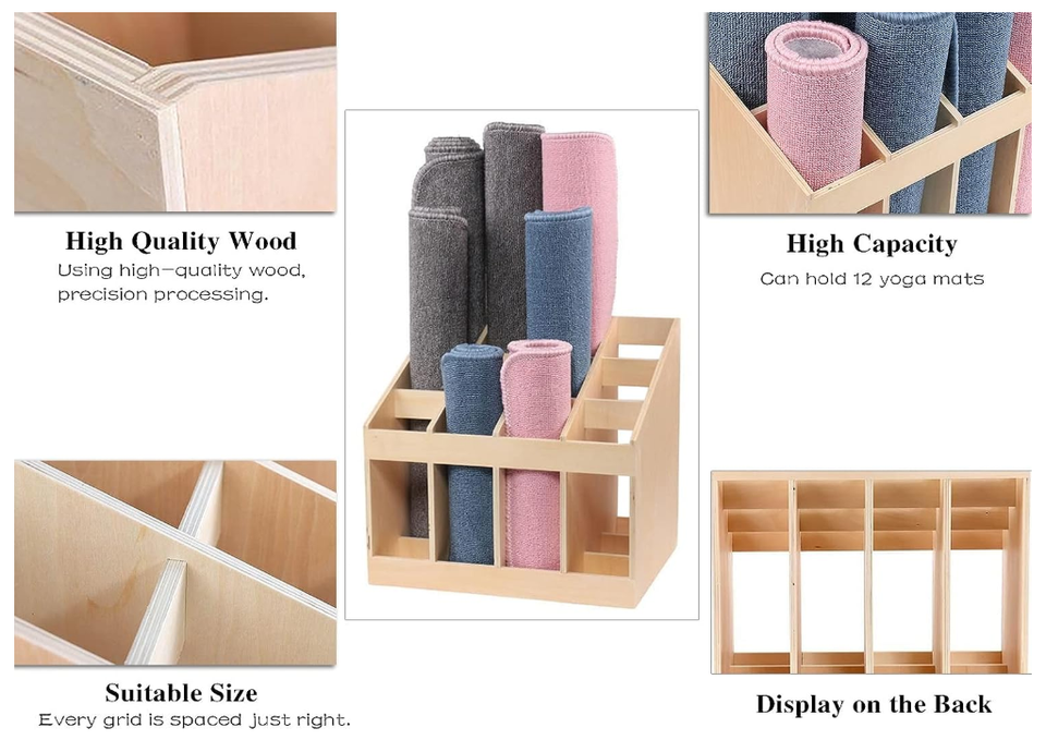 เสื่อโยคะอเนกประสงค์12ช่องสำหรับสตูดิโออินเดียพร้อมที่เก็บไม้เนื้อแข็งสำหรับใช้ในสำนักงานหรือโรงเรียน