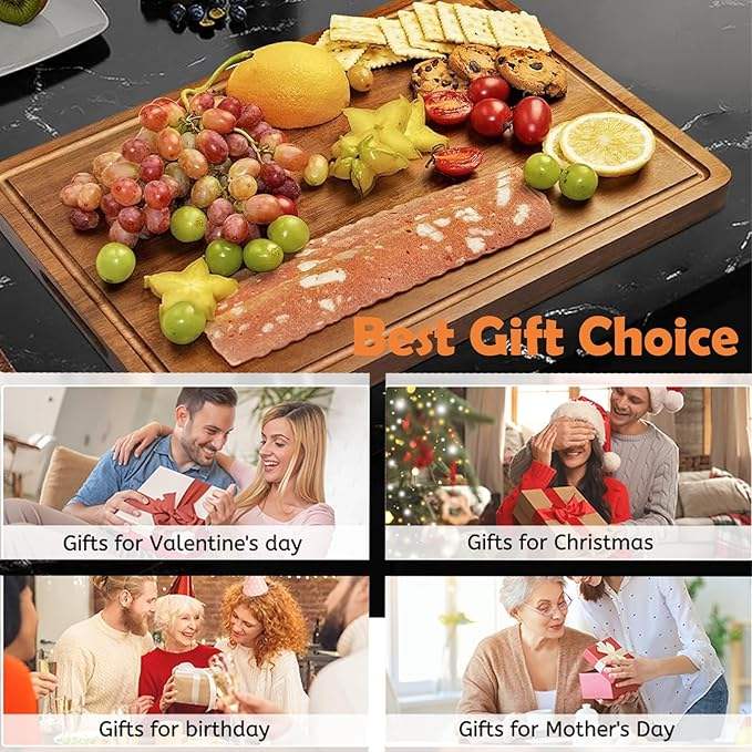 เขียงไม้ไผ่อเนกประสงค์พร้อมด้ามจับ | เขียงแข็งแรงทนทานสำหรับหั่นเนื้อ ผัก และผลไม้