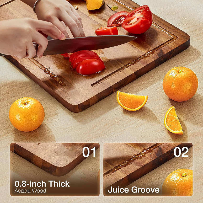 เขียงไม้ไผ่อเนกประสงค์พร้อมร่องสำหรับน้ำผลไม้ | เขียงอเนกประสงค์สำหรับเตรียมเนื้อสัตว์ ผัก และผลไม้