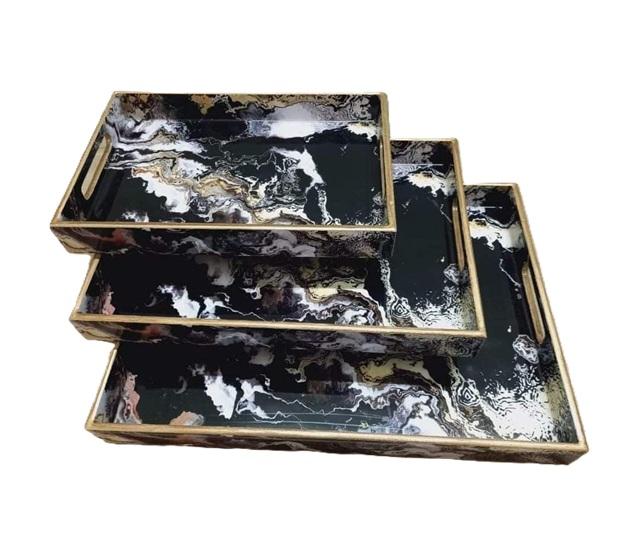 ชุดถาดซ้อนอเนกประสงค์พิมพ์ลายดอกไม้เคลือบ3อันสำหรับตกแต่งบ้านถาดอาหารเช้าของขวัญตกแต่งงานแต่งงานและงานขึ้นบ้านใหม่