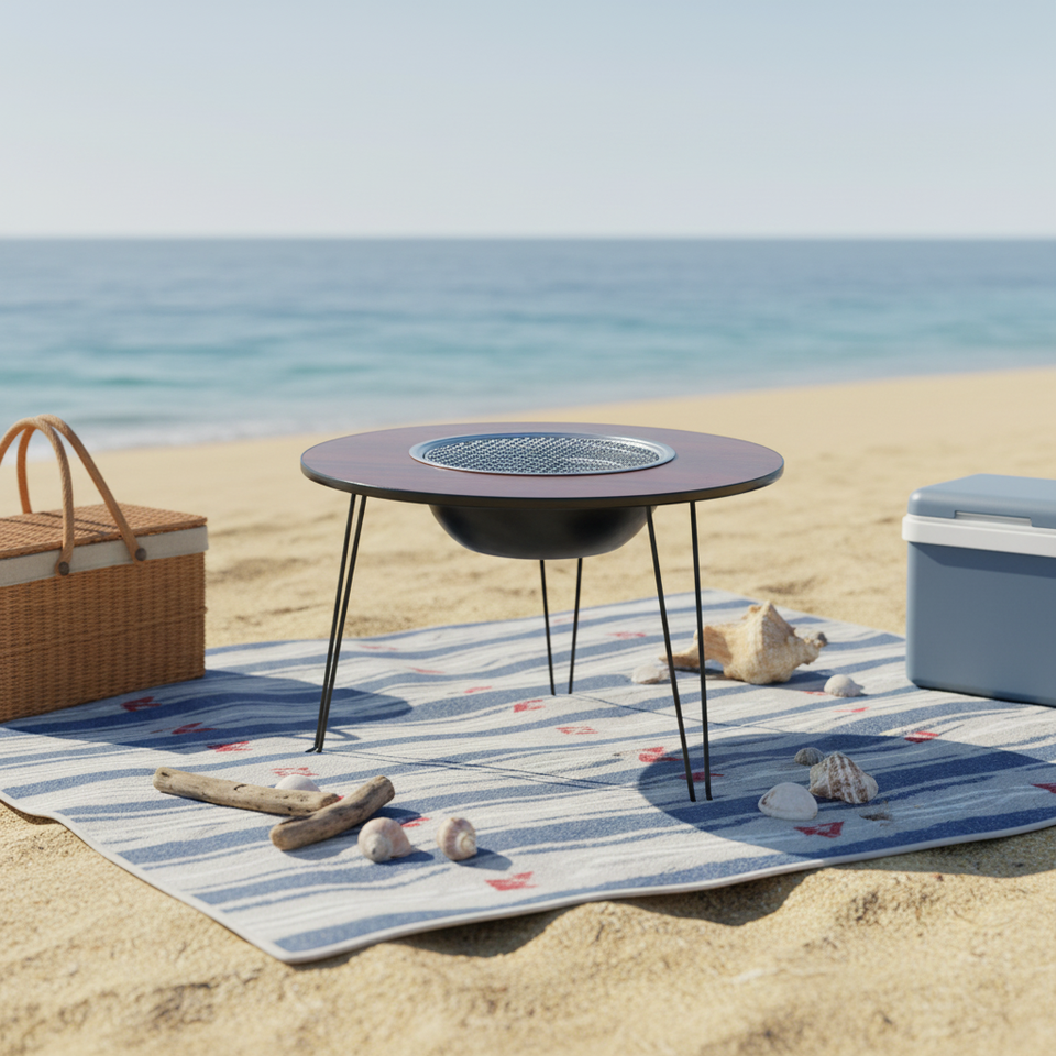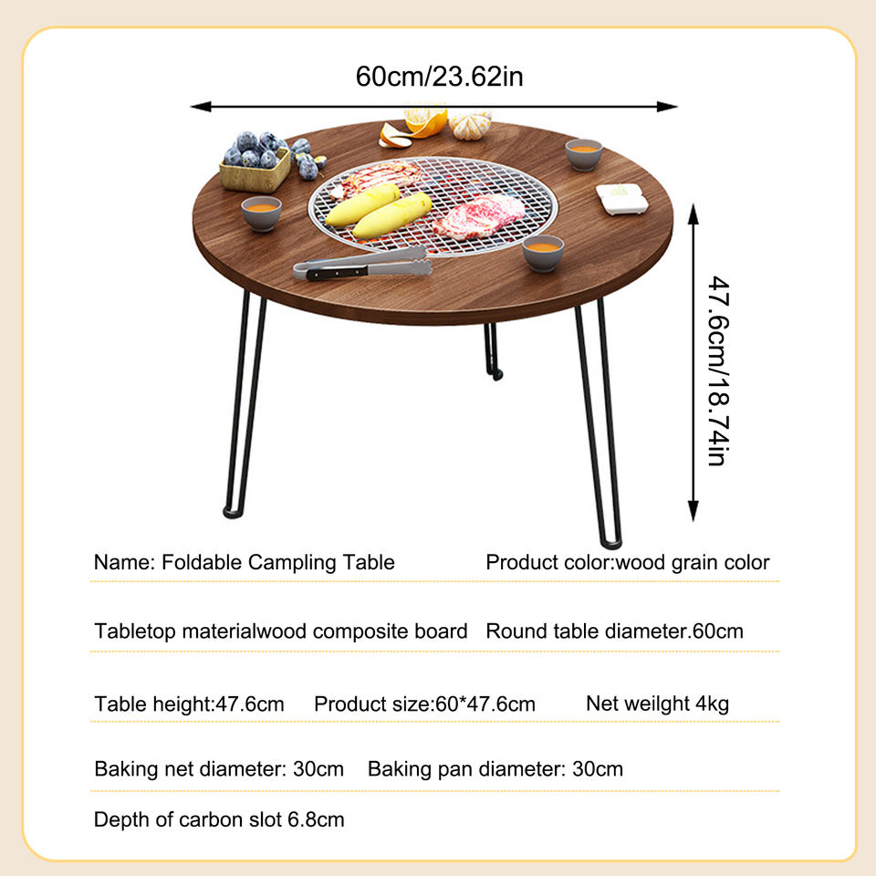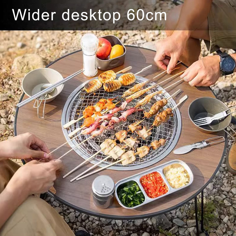 เตาทำอาหารอเนกประสงค์แบบพับได้สำหรับใช้งานกลางแจ้ง พร้อมเตาปิ้งย่างถ่านในตัว โต๊ะปิกนิกสำหรับ 5-6 คน