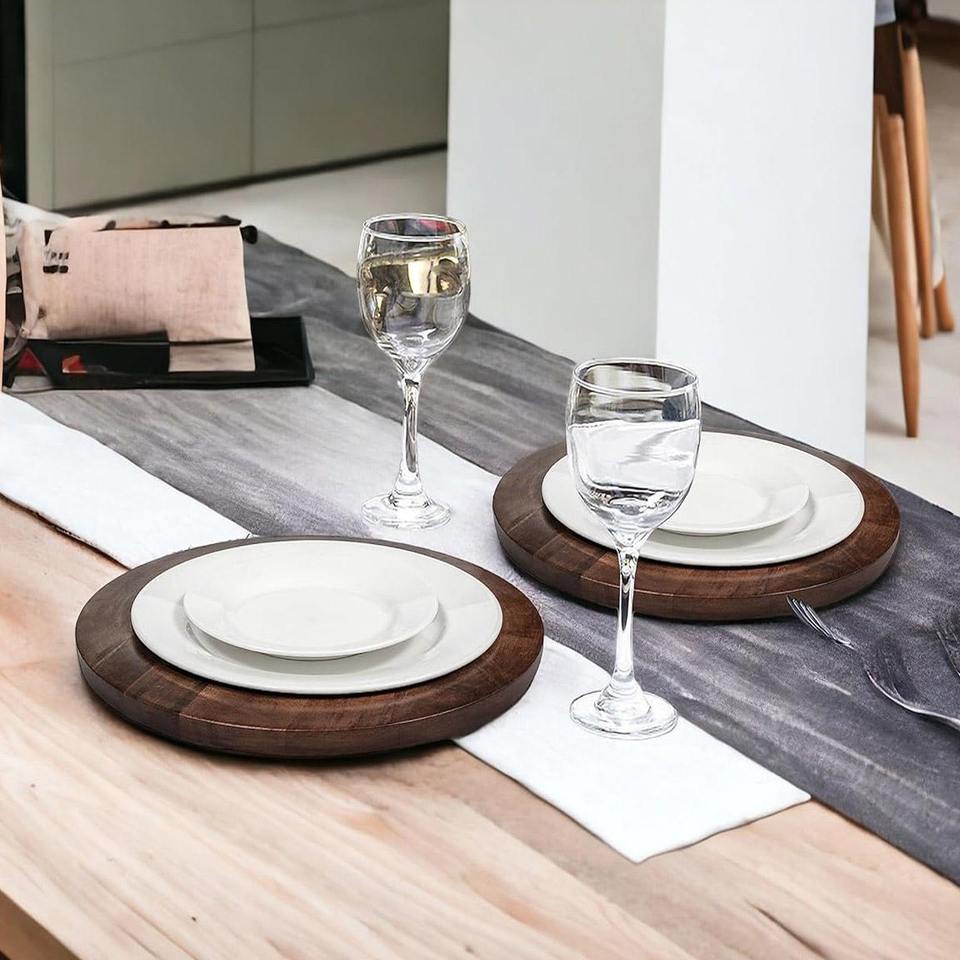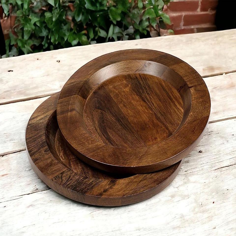 ถาดเสิร์ฟไม้มะม่วงทรงกลมอเนกประสงค์ แพ็ค 2 ชิ้น สำหรับเสิร์ฟอาหาร งานเลี้ยง อาหารเช้า อาหารกลางวัน อาหารเย็น