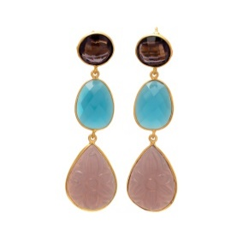 ต่างหูห้อยชุบทองทองเหลืองอัญมณีหลากสี