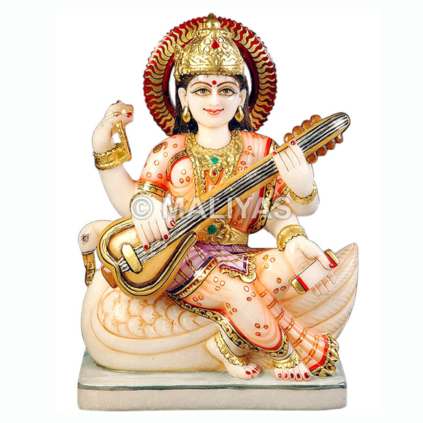 มูรตีแห่งพระแม่ศรีสวัติ | พระพุทธรูปซาราสวาตีหินอ่อนทำมือสำหรับบ้านและวัด – มาลียาส