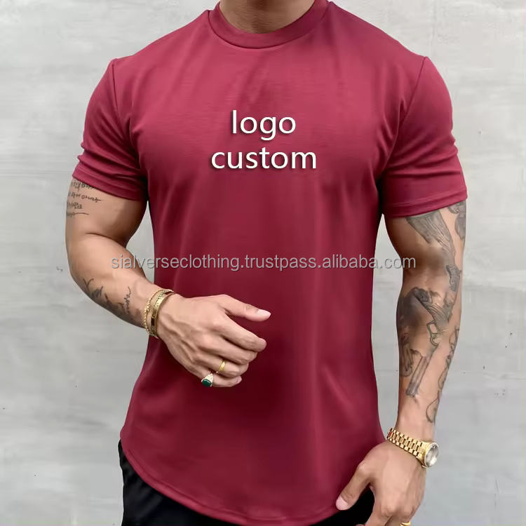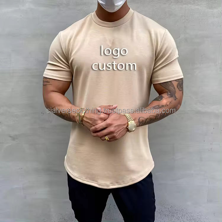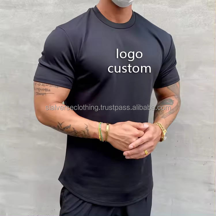 เสื้อยืดฟิตเนสกล้ามเนื้อสั่งทำสำหรับผู้ชายเสื้อยืดออกกำลังกายทรงสลิมฟิตเสื้อยืดผ้าฝ้ายยืดสแปนเด็กซ์ธรรมดาสำหรับผู้ชาย