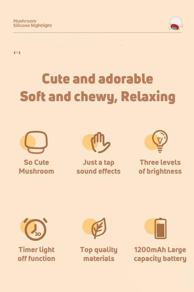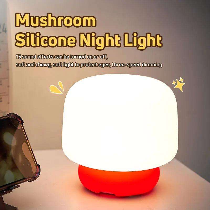โคมไฟตั้งโต๊ะรูปเห็ดน่ารัก ไฟกลางคืนซิลิโคน LED สำหรับห้องนอน ไฟตกแต่งแบบชาร์จได้ ของขวัญการ์ตูนสำหรับเด็ก