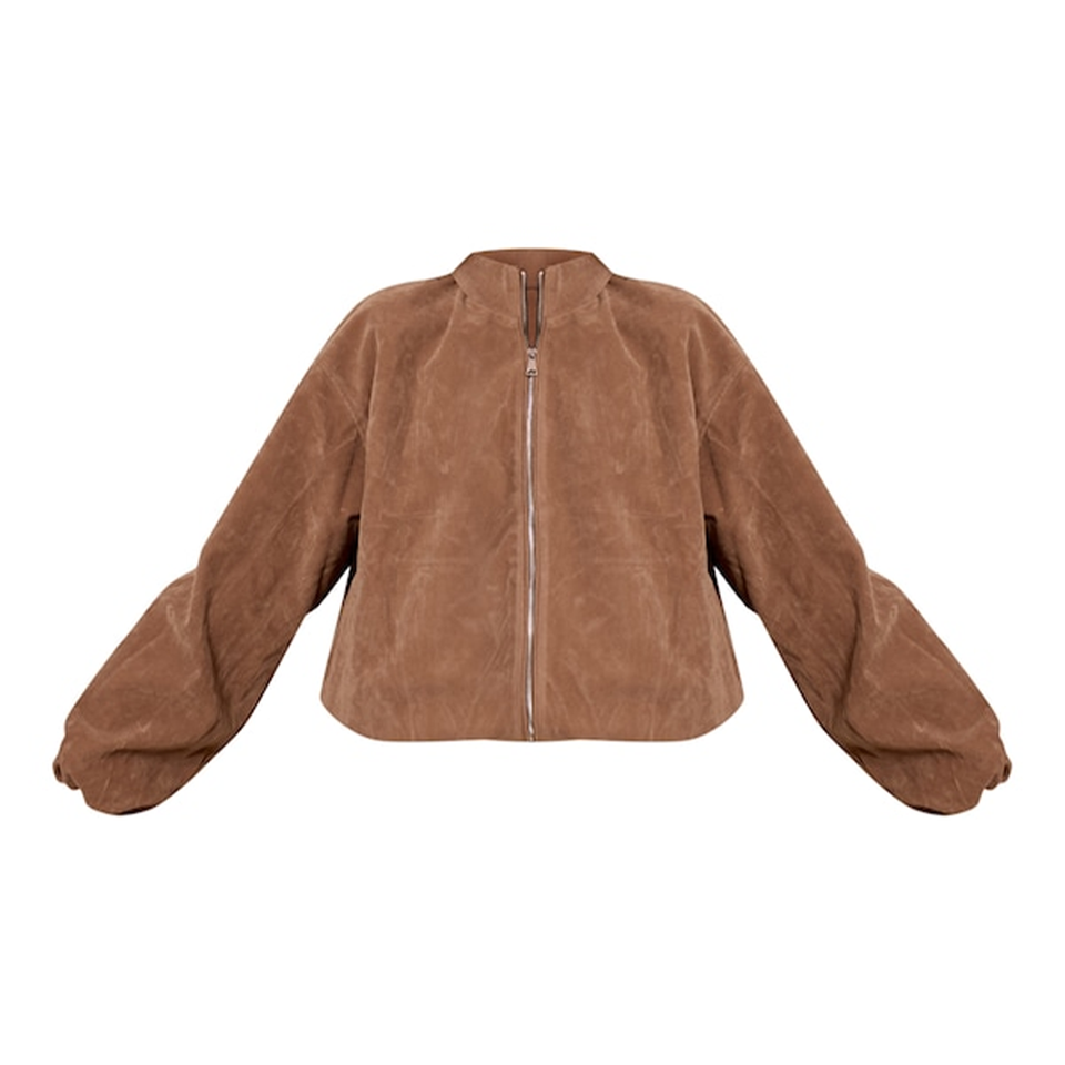 เสื้อแจ็คเก็ตบอมเบอร์หนังกลับเร็กซีนลายเห็ด เนื้อผ้านุ่มหรูหรา สวมใส่ได้สองด้าน ทรงหลวมสบาย สไตล์สตรีทแวร์ ลุคเท่ๆ สำหรับใส่ทุกวัน