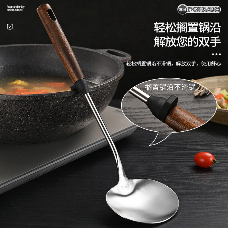 ที่ตักเห็ด สแตนเลส 304 พร้อมด้ามไม้ สำหรับใช้ในครัวเรือน