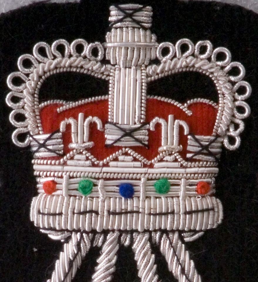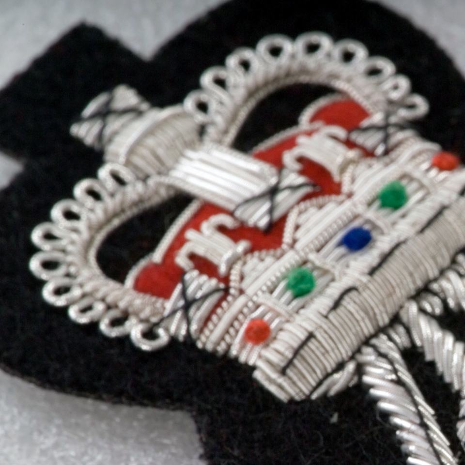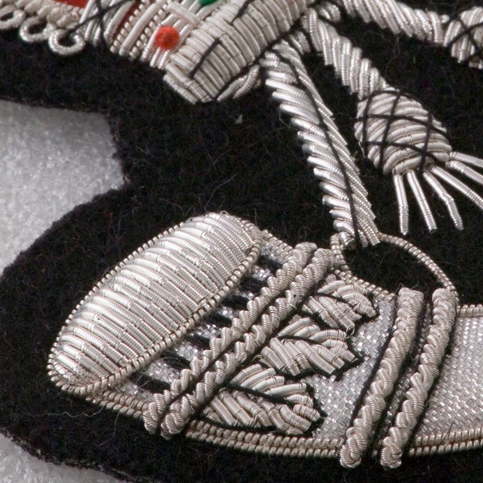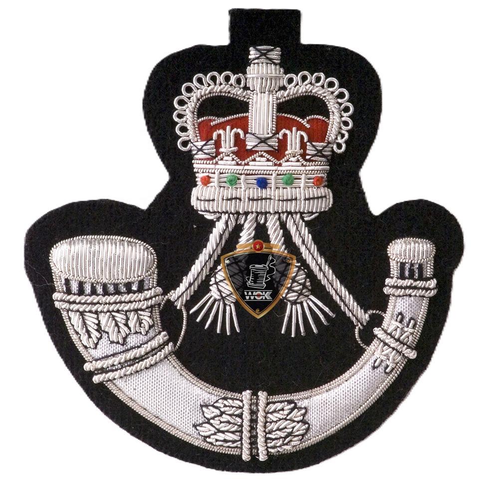 ตราสัญลักษณ์ดนตรี ปักมือด้วยดิ้นทอง พร้อมลายเส้นด้ายสีดำ งานฝีมือระดับพรีเมียม ขนาด 9 x 8 ซม.