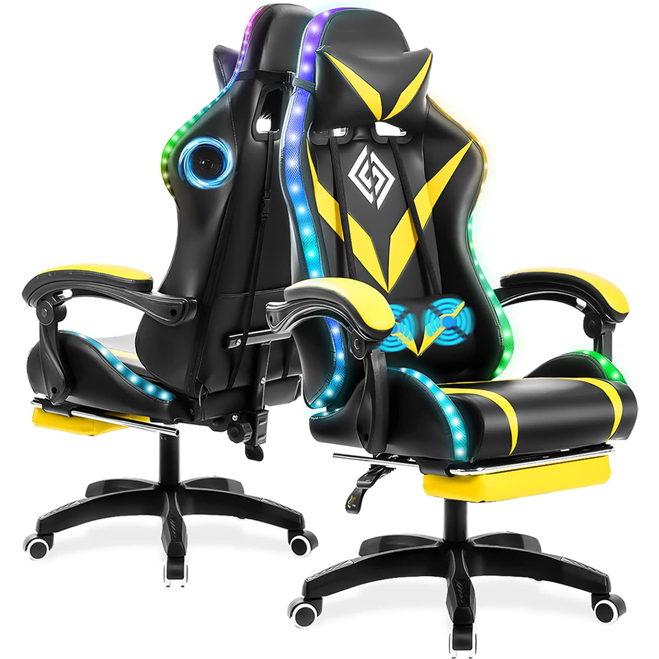 เก้าอี้เล่นเกมพร้อมลำโพง, เก้าอี้วิดีโอเกม RGB ไฟ LED แบบกระพริบเหมาะสำหรับนักเล่นเกมหรือนักเล่นเกม