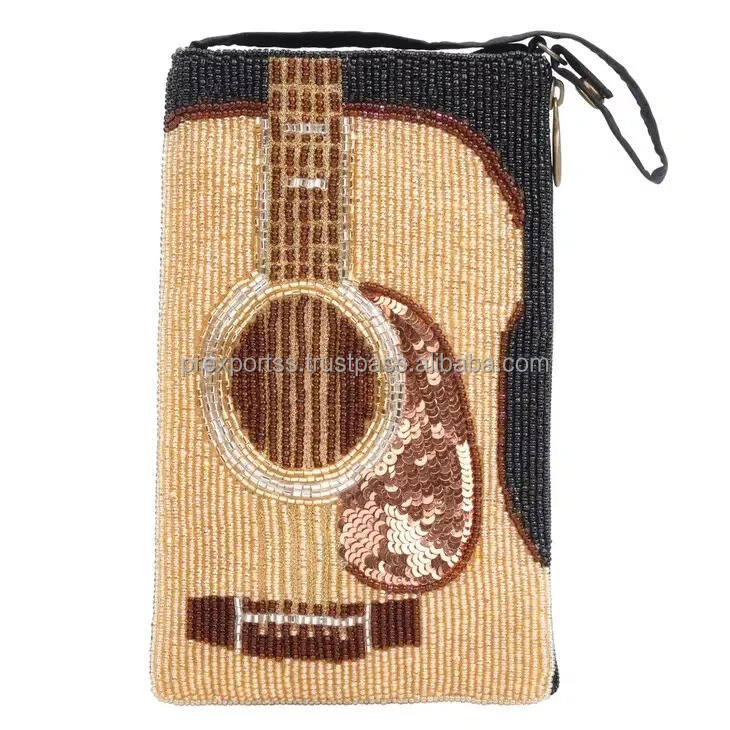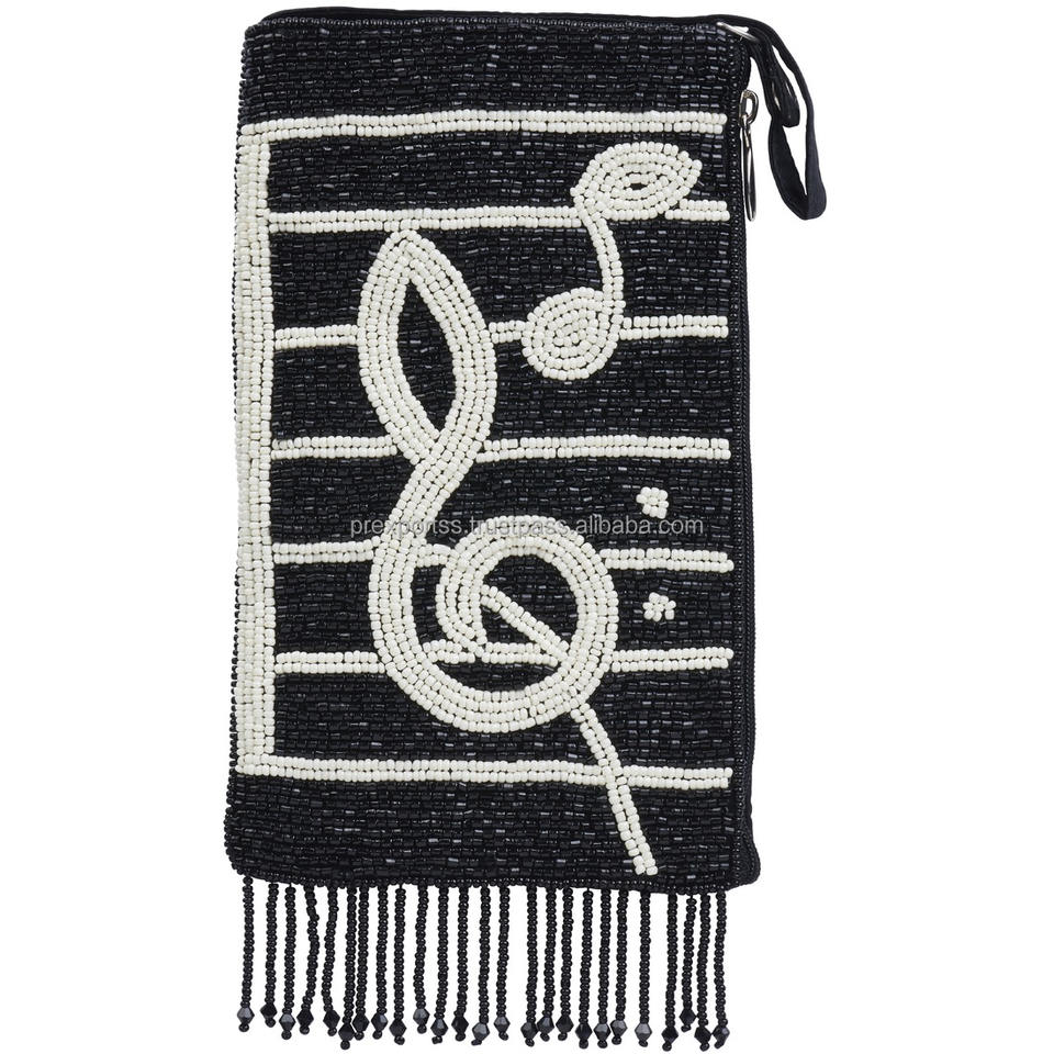 สายคล้องลูกปัดลายโน้ตดนตรีแบบพกพากันน้ำสไตล์วินเทจ | กระเป๋าสะพายข้างหลากสีทำมือพร้อมพู่ห้อยสำหรับคนรักดนตรี