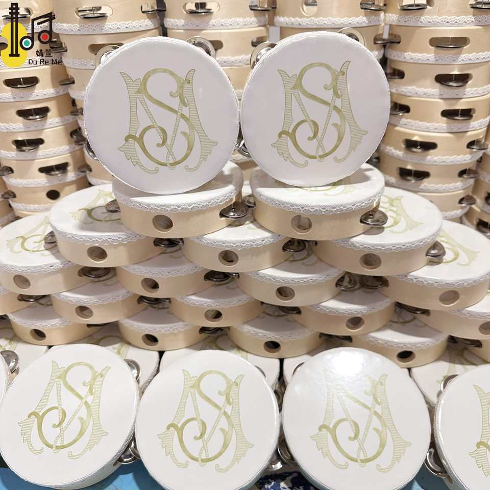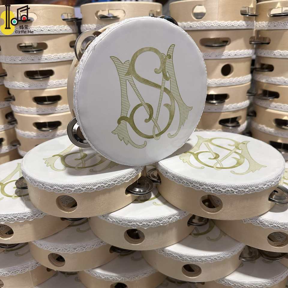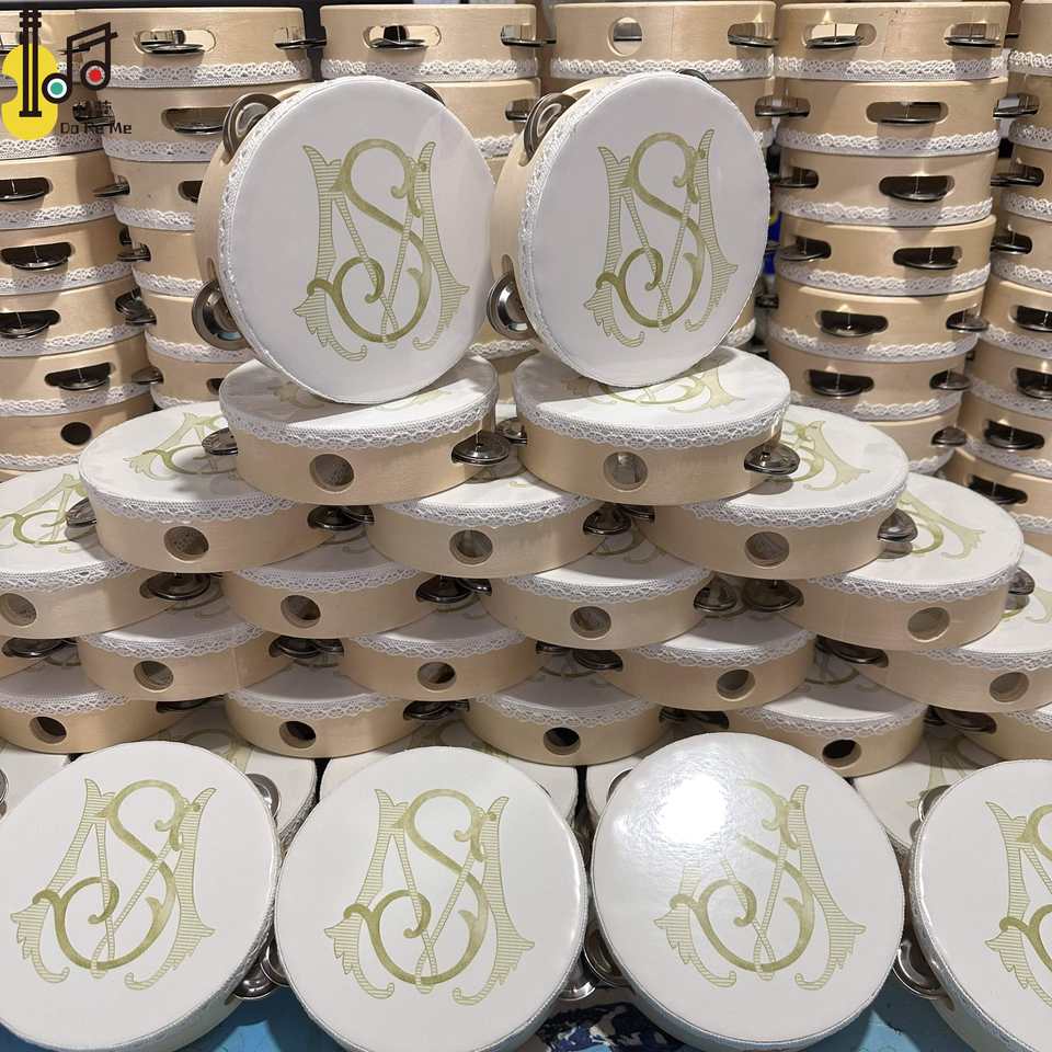 เครื่องดนตรีประเภทเพอร์คัชชัน แทมบูรีนขนาดกลาง 6 นิ้ว แทมบูรีนแบบกำหนดเองสำหรับงานแต่งงาน งานปาร์ตี้ โบสถ์ ราคา