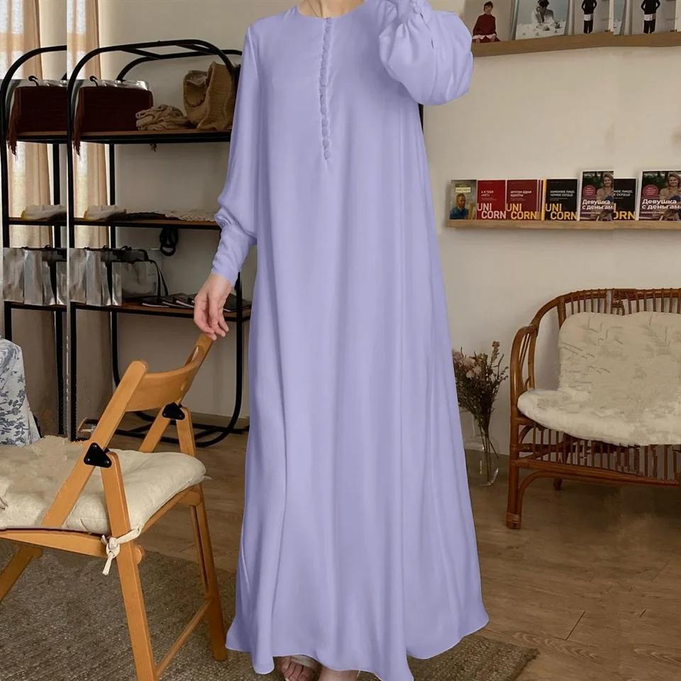 ชุดอาบายะห์มุสลิมแบบชิ้นเดียวสำหรับละหมาด ผู้หญิงทรงหลวมยาว เสื้อผ้าอิสลาม คอทรงโอ สไตล์ดูไบ ซาอุดิอาระเบีย ชุดคลุมแบบตุรกี