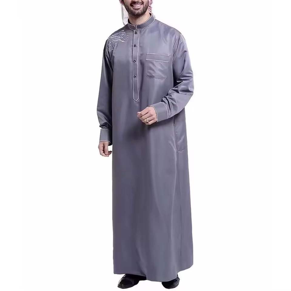 เสื้อผ้ามุสลิมแบบอาหรับลำลองสำหรับผู้ชาย โธบ จุบบะ ผ้าโพลีเอสเตอร์ ระบายอากาศได้ดี ทรงหลวม ยาวคลุมเท้า ชุดละหมาด ขายออนไลน์ ดีไซน์ใหม่