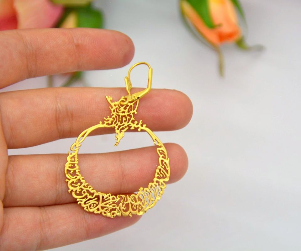 ต่างหูรูปพระจันทร์เสี้ยวของชาวมุสลิม,ต่างหูเครื่องประดับรูปคัมภีร์กุรอานเทพเจ้าแห่งตัวอักษรภาษาอาหรับ