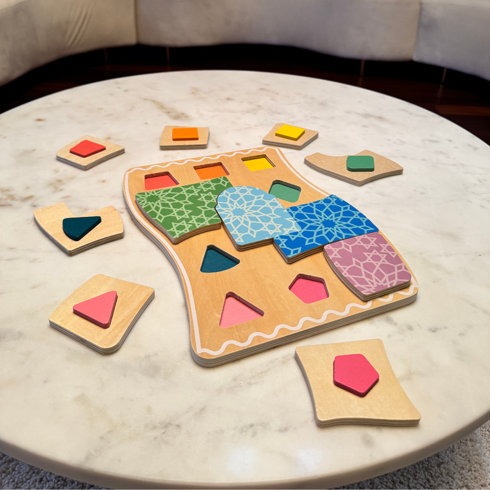 พรมสวดมนต์สำหรับเด็กมุสลิมปริศนาทำจากไม้หลากสี