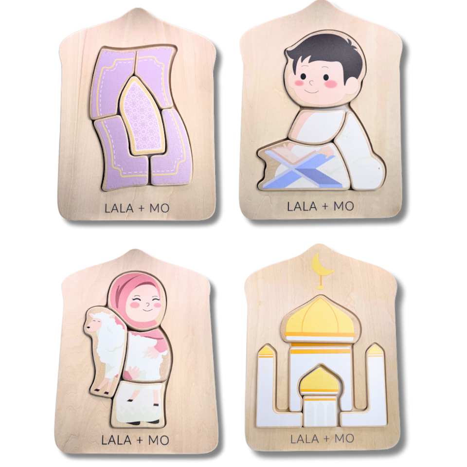 ของเล่นเด็กมุสลิมชุดปริศนาบล็อกไม้ปริศนาตัวต่อแบบอิสลาม