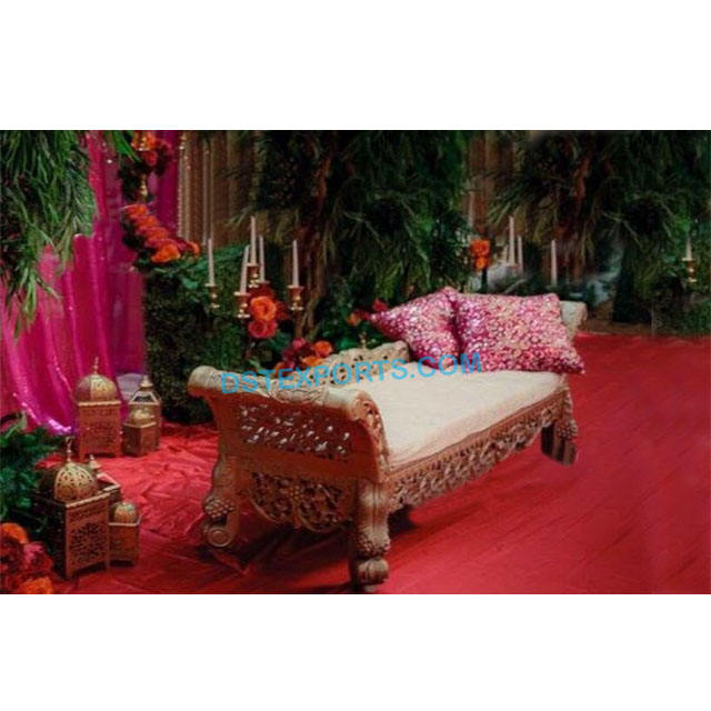 โซฟาไม้แกะสลักสำหรับเวทีมุสลิมเมฮันดี้ทำด้วยมือสำหรับงานแต่งงานทำด้วยไม้สองที่นั่งโซฟาแกะสลักสำหรับงานแต่งงานทำจากไม้สหรัฐอเมริกา