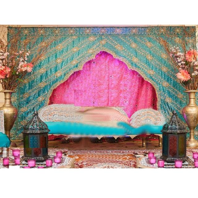 มุสลิม Mehndi ม่านฉากหลังสไตล์อาร์ค,ม่านฉากหลังสไตล์อาร์คปักลายมือสำหรับ Mehndi