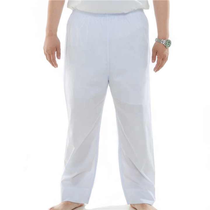 กางเกงลำลองขายาวสำหรับผู้ชายชาวมุสลิม,กางเกงทอปทรงหลวมสีล้วนสวมใส่สบายประกอบด้วยกางเกงอาหรับผ้าคอตตอน