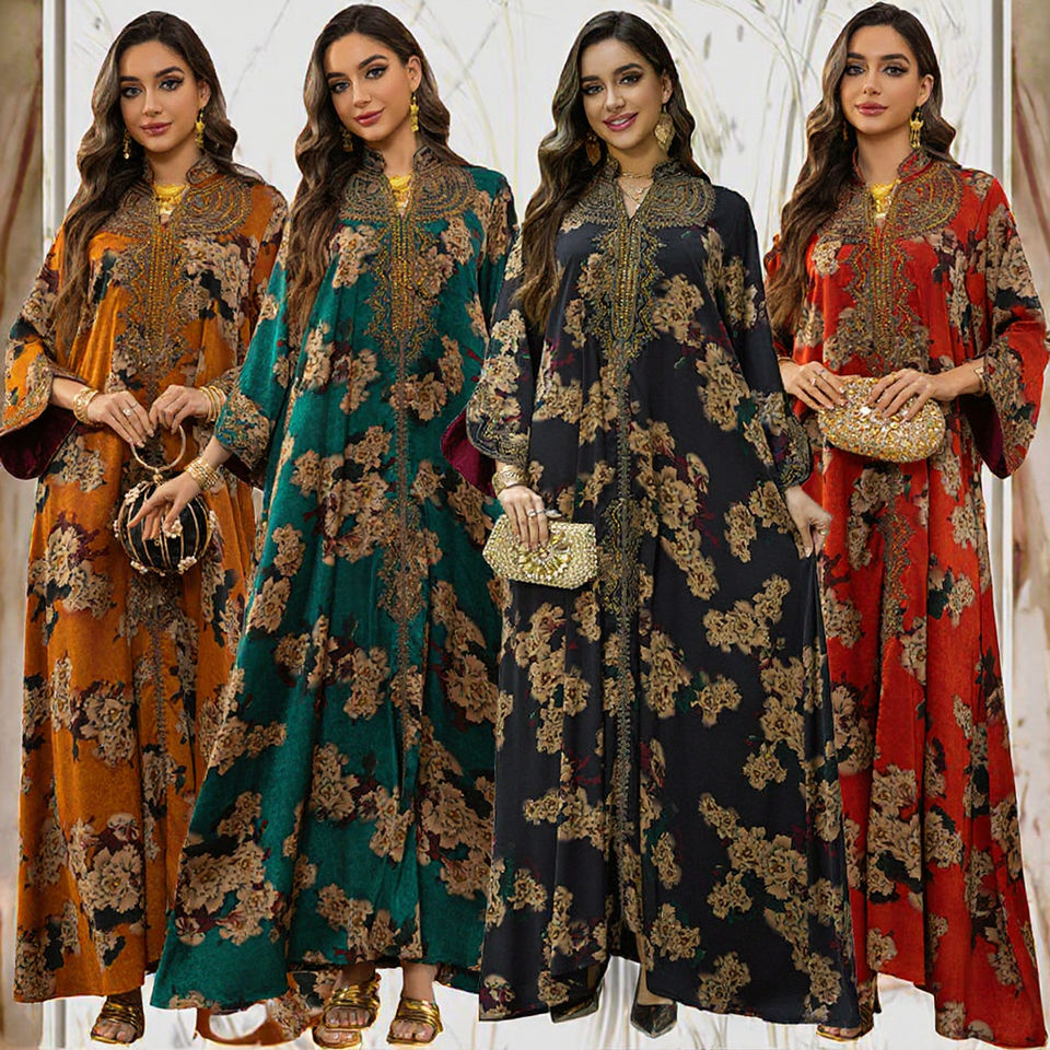ชุดเดรสยาวปักลายดอกไม้สำหรับผู้หญิงชุดเดรสมุสลิมผ้าคาฟตันอาหรับแฟชั่นขนาดใหญ่พิเศษ
