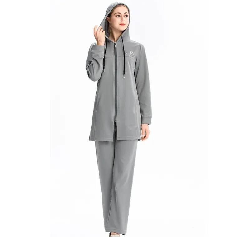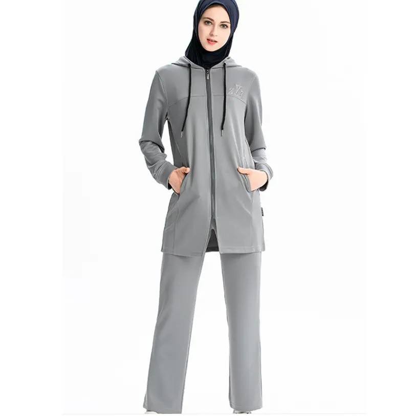 ชุดกีฬาสำหรับสตรีมุสลิมแบบสุภาพ ชุดฮิญาบ ชุดวอร์มแบบปกติ ชุดเสื้อผ้าอิสลามสำหรับกิจกรรมกลางแจ้ง ชุดออกกำลังกายสำหรับผู้หญิง น้ำหนักเบา แห้งเร็ว