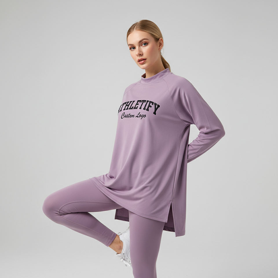 เสื้อออกกำลังกายแขนยาวทรงยาวไซส์ใหญ่ พิมพ์ลายระเหิด