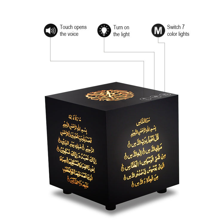 ลำโพงอ่านคัมภีร์กุรอานแบบสัมผัสพร้อมไฟ LED สำหรับชาวมุสลิม ควบคุมด้วยรีโมท รองรับการเล่นเสียงรอบทิศทาง พร้อมการ์ด TF 8GB