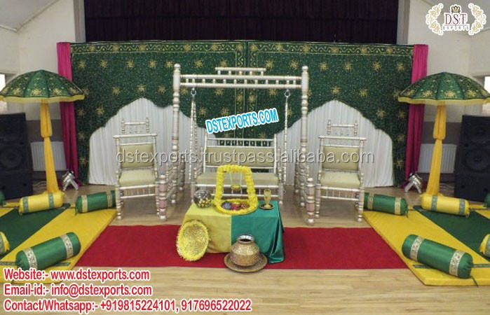 ชุดชิงช้าบนเวทีสำหรับมุสลิม nikah ชุดชิงช้าไม้แกะสลักล่าสุดสำหรับงานแต่งงานอินเดีย Sangeet เวทีแกว่ง/jhula USA DST