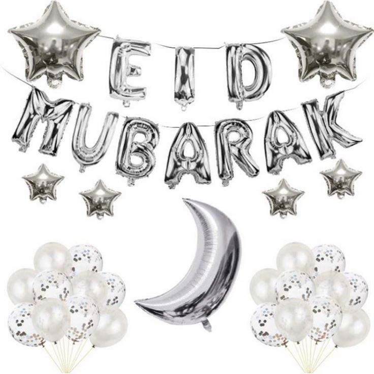 ลูกโป่งฟอยล์อีดมูบารักสำหรับตกแต่งงานปาร์ตี้สำหรับชาวมุสลิมขนาด16นิ้วลูกโป่งยางพาราสีทอง