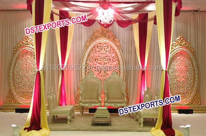 มุสลิมแต่งงานทองแกะสลักฉากหลังกรอบรูป/ปากีสถานแต่งงานไฟเบอร์แผงเวที/งานแต่งงานไฟเบอร์กรอบรูปแผงตกแต่ง