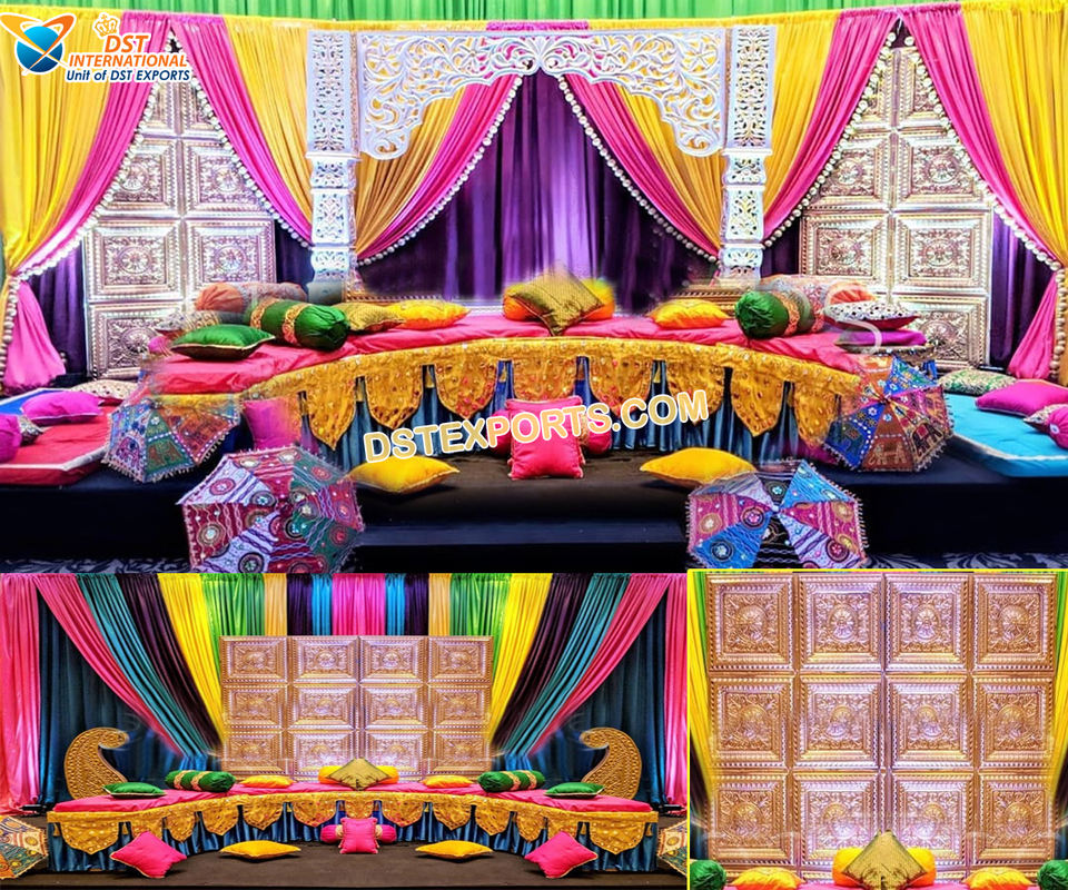 เวทีตกแต่งงานแต่งงานมุสลิม งานเฮนน่า งานแต่งงานแบบอาหรับ งานเมห์นดี/ฮัลดี งานแต่งงานแบบปากีสถาน อุปกรณ์ประกอบฉากงานเมห์นดี