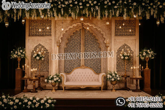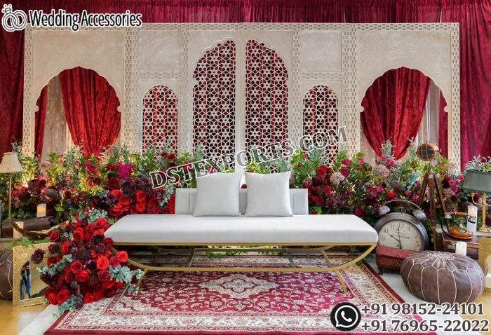 ฉากหลังงานแต่งงานมุสลิมแบบนิกะห์ ตกแต่งเวทีวอลิมาสุดหรู ฉากหลังธีมมุกัลสำหรับงานแต่งงาน แคลิฟอร์เนีย