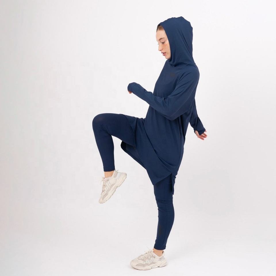 ชุดกีฬาแขนยาวสำหรับผู้หญิงมุสลิม ชุดออกกำลังกายมีฮู้ดพร้อมกระเป๋า ออกแบบมาเพื่อการออกกำลังกายที่ยิมและฟิตเนส