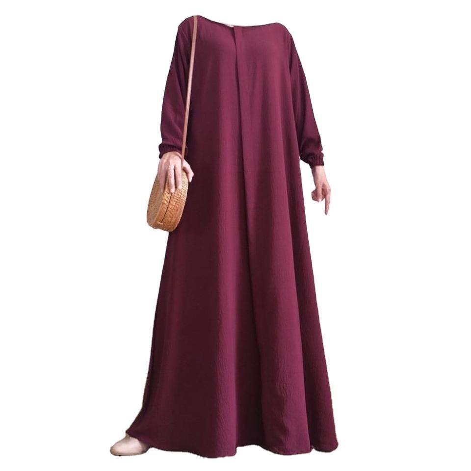 ชุดอาบายะห์สีดำเรียบหรูสำหรับสตรีชาวมุสลิมในตะวันออกกลาง แขนยาว