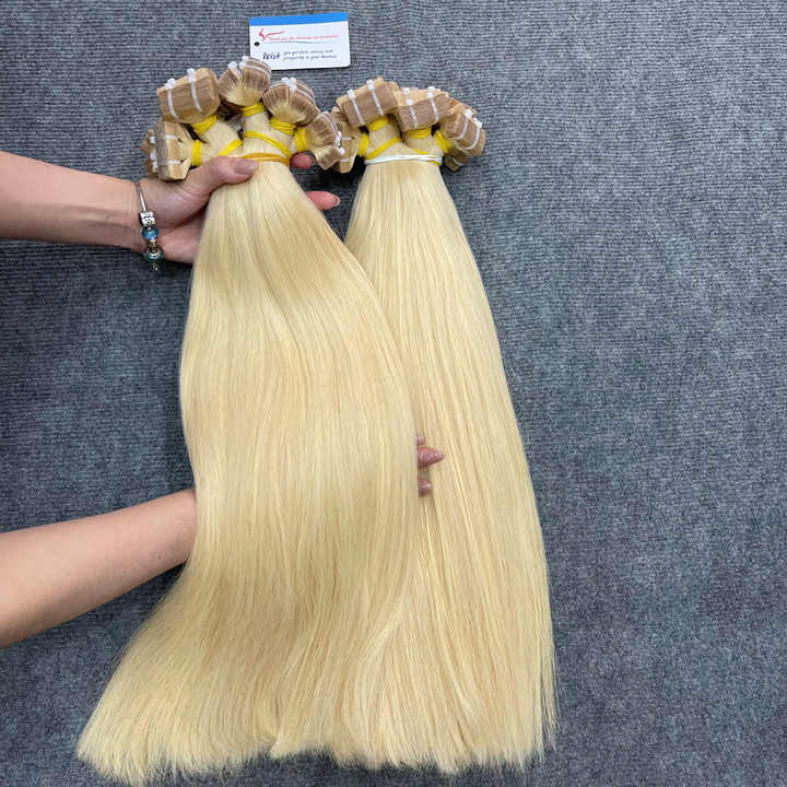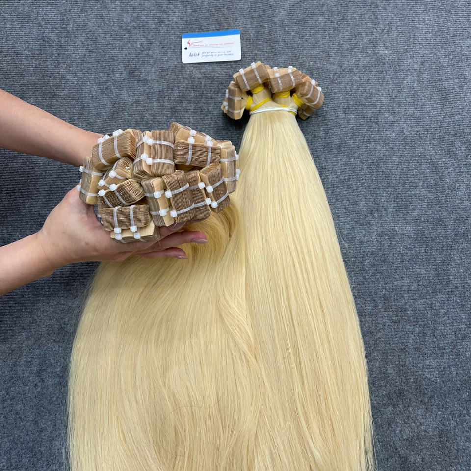 ต้องมีผมต่อแบบเทปตรงธรรมชาติ ปี 2026 ใช้ผมแท้เวียดนาม 100% สีบลอนด์ น้ำหนัก 100 กรัมต่อช่อ
