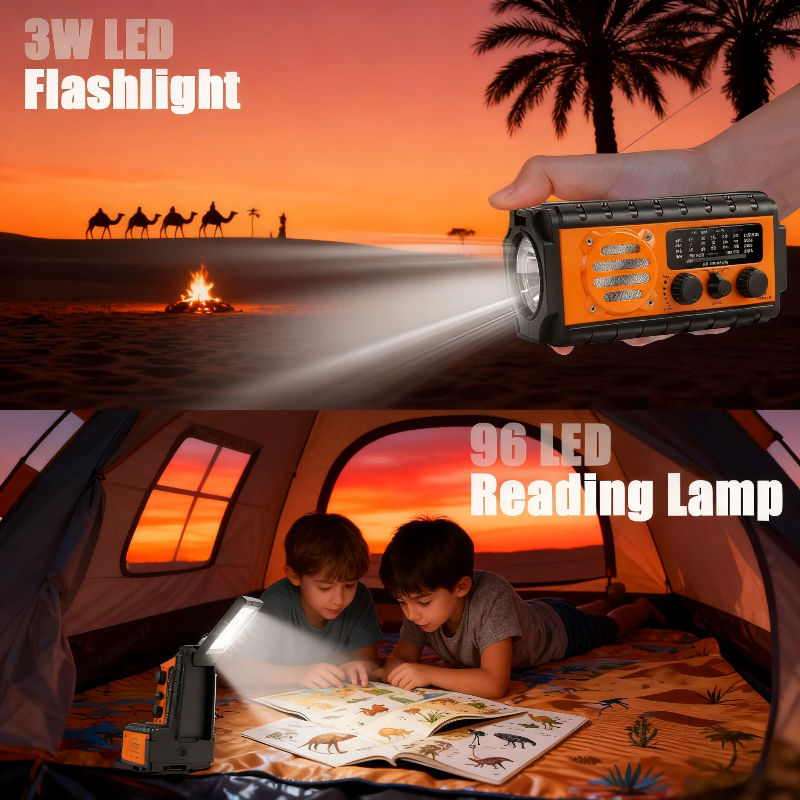 ต้องมีวิทยุพลังงานแสงอาทิตย์ฉุกเฉิน ABS มือข้อเหวี่ยง10W 20000mAh ธนาคารพลังงาน AM/FM การแจ้งเตือนสภาพอากาศอยู่รอดสำหรับพลังงานสะอาด