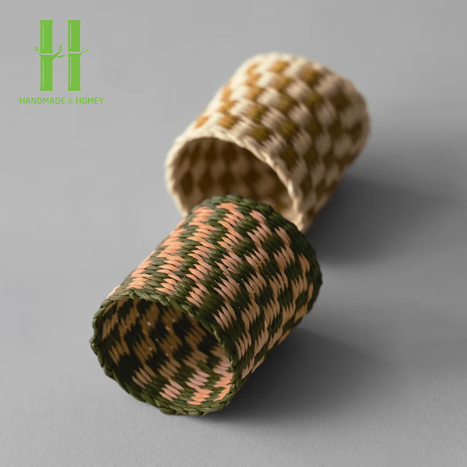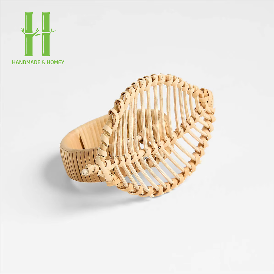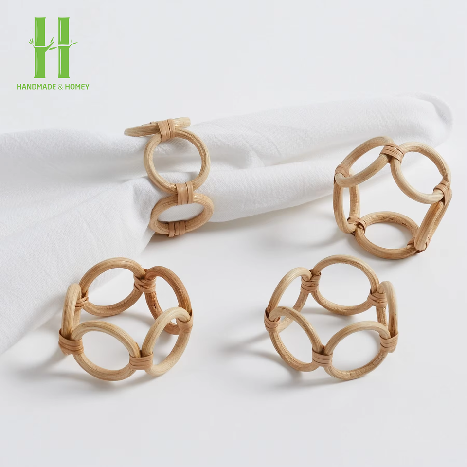 ต้องมีห่วงผ้าเช็ดปากไม้ไผ่โบฮีเมียนทำด้วยมือผู้ถือผ้าทอจากธรรมชาติของเวียดนามทนทานเป็นมิตรกับสิ่งแวดล้อมสำหรับการตกแต่งโต๊ะอาหาร