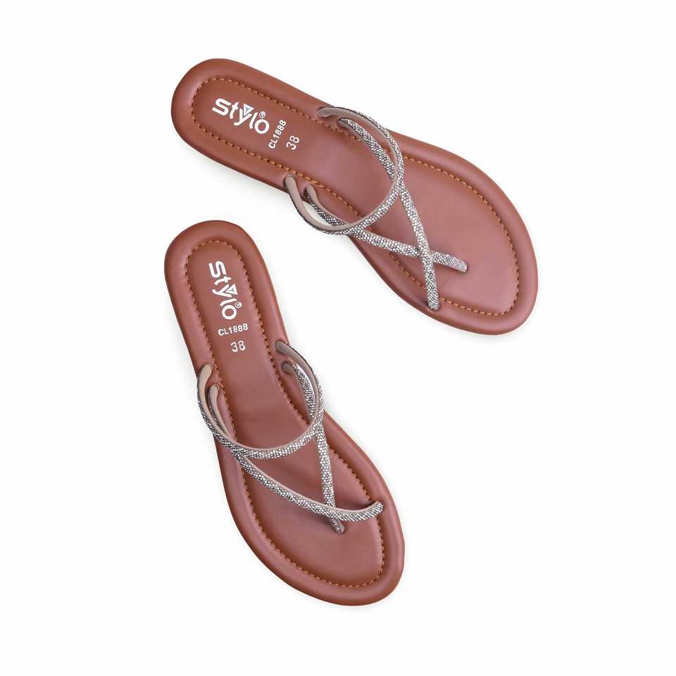 รองเท้าแตะส้นเตี้ย CL1888มัสตาร์ดลำลอง