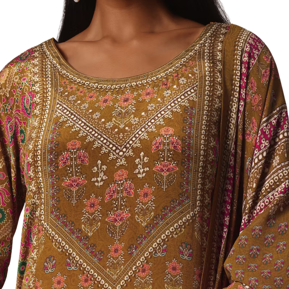 ชุดพาลาซโซพิมพ์ลายมัสตาร์ดผ้าชีฟองใส่ทำงานด้วยหินเครื่องแต่งกายแบบชาติพันธุ์สำหรับผู้หญิงขายส่ง