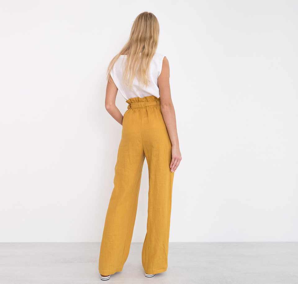 Product Name:Mustard Yellow Solid Linen high waisted Relaxed Pant