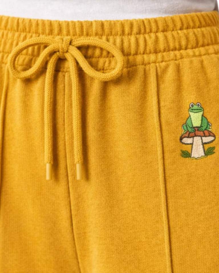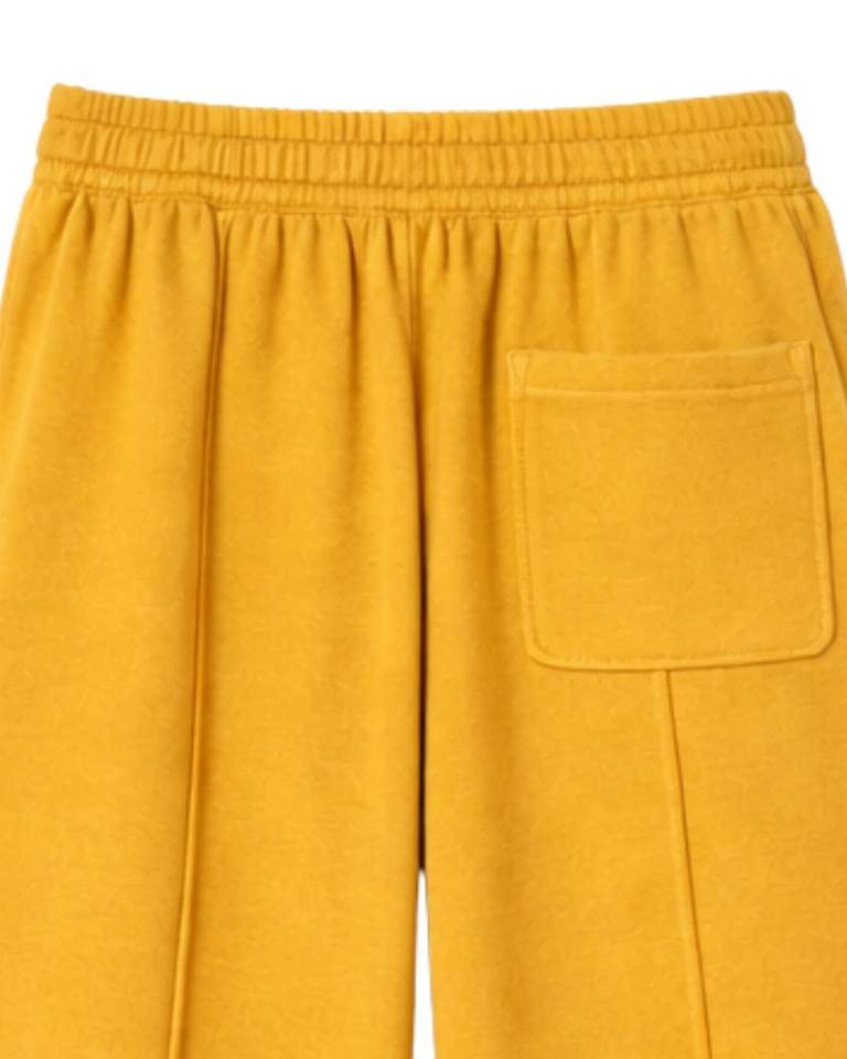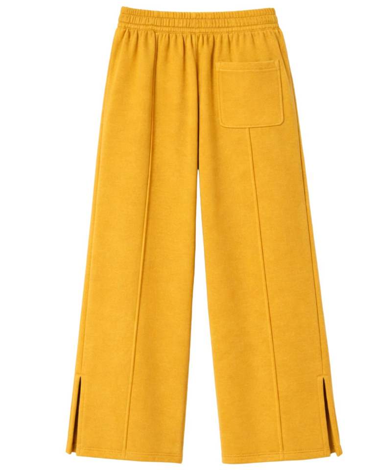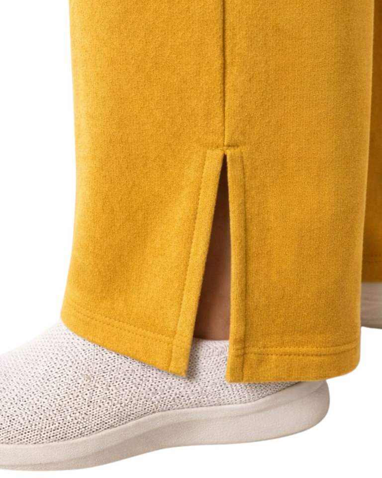 กางเกงวอร์มขายาวสีเหลืองมัสตาร์ดสำหรับผู้หญิง เอวยางยืด มีเชือกผูก เอวหลวม ใส่สบาย ทรงตรง นุ่มสบาย เหมาะสำหรับใส่พักผ่อน
