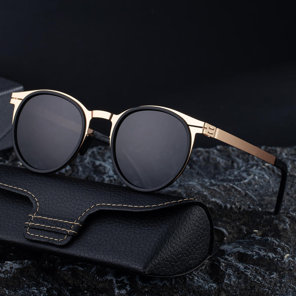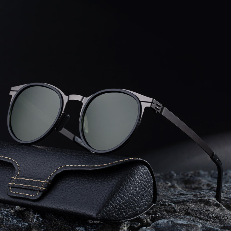 มาย-98330 แว่นกันแดดโพลาไรซ์ทรงวงรีสำหรับผู้ชายกรอบสแตนเลสป้องกันรังสียูวี 400 ประเภท 3 ที่บังแดดสีดำ
