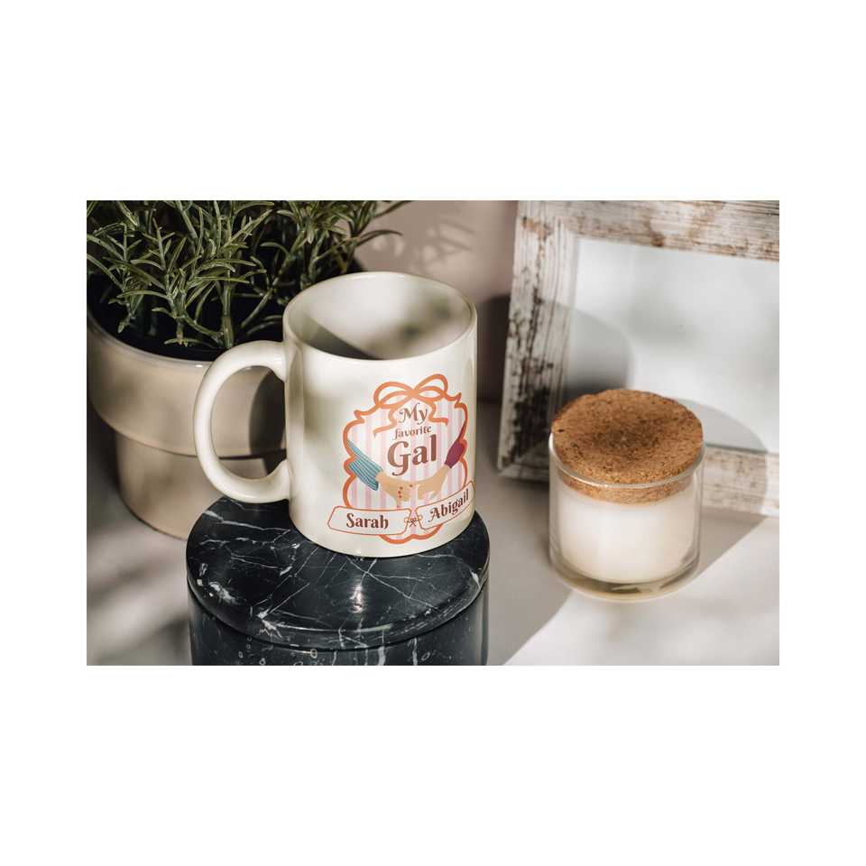 แก้วเซรามิก 330 มล. ลาย "My Favorite Girl" สำหรับเพื่อนสนิท สลักชื่อได้ ดีไซน์ขาวดำ น่ารัก เหมาะสำหรับชาและเครื่องดื่ม