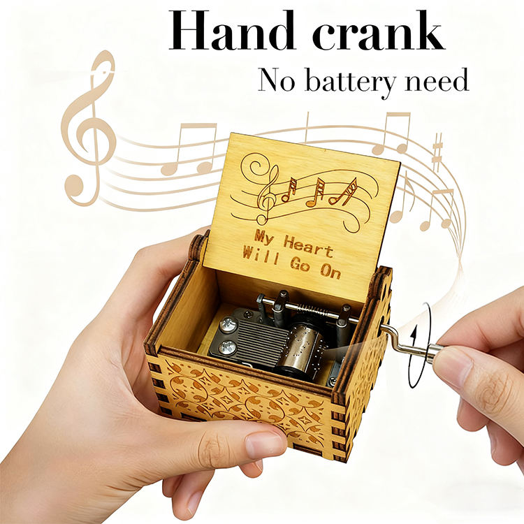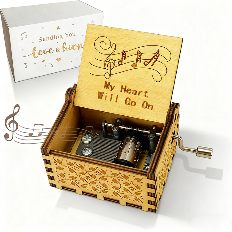 My Heart Will Go ON Retro กล่องดนตรีไม้แกะสลักเลเซอร์เป็นมิตรกับสิ่งแวดล้อม