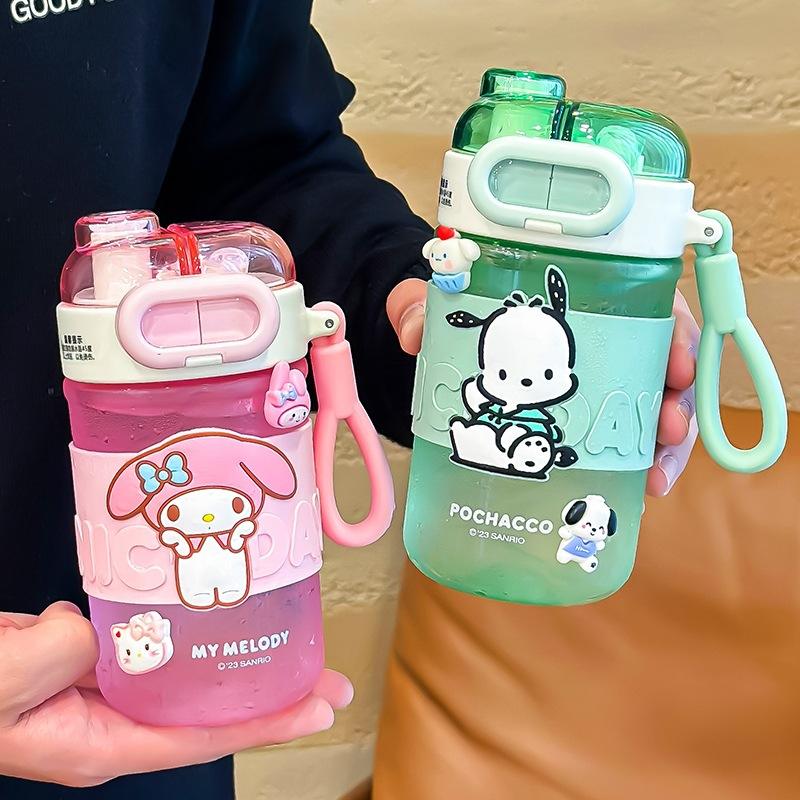 ขวดน้ำเด็กมายเมโลดี้ 500 มล. แก้วพลาสติกพกพาพร้อมหลอดสำหรับเด็กผู้หญิงใช้กลางแจ้ง