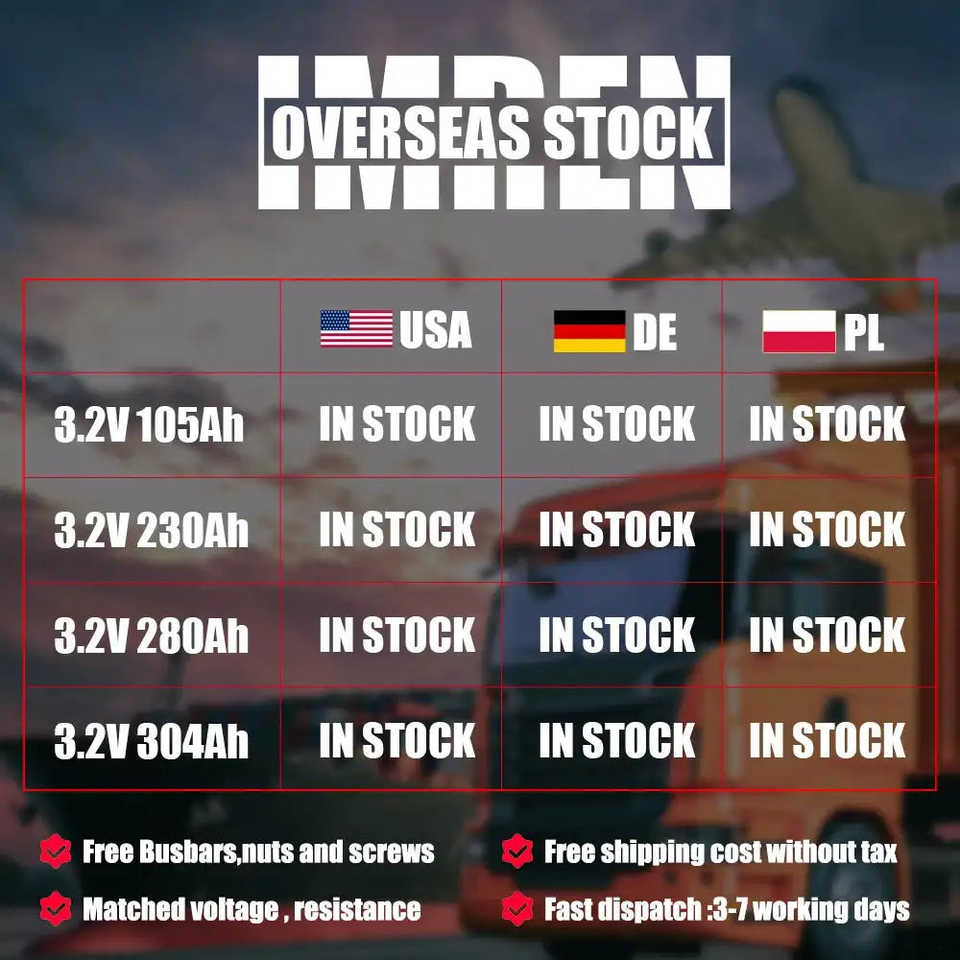 แบตเตอรี่ลิเธียม Lifepo4 เกรด A ขนาด 230Ah 3.2V ของร้านค้าฉัน รุ่น IMR มีสินค้าใน EU US USA สำหรับรถยนต์